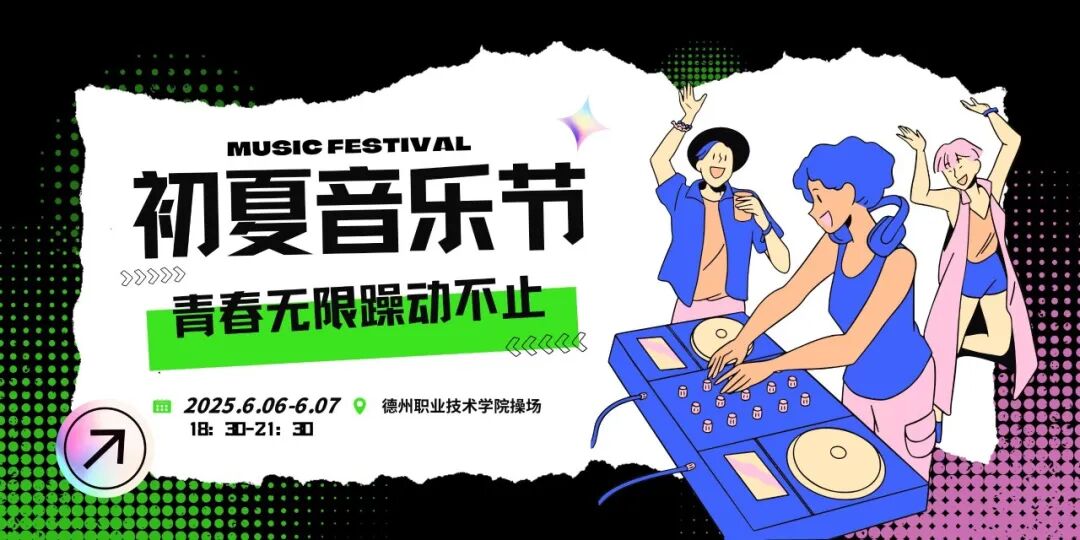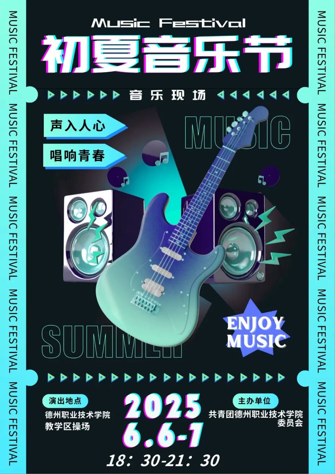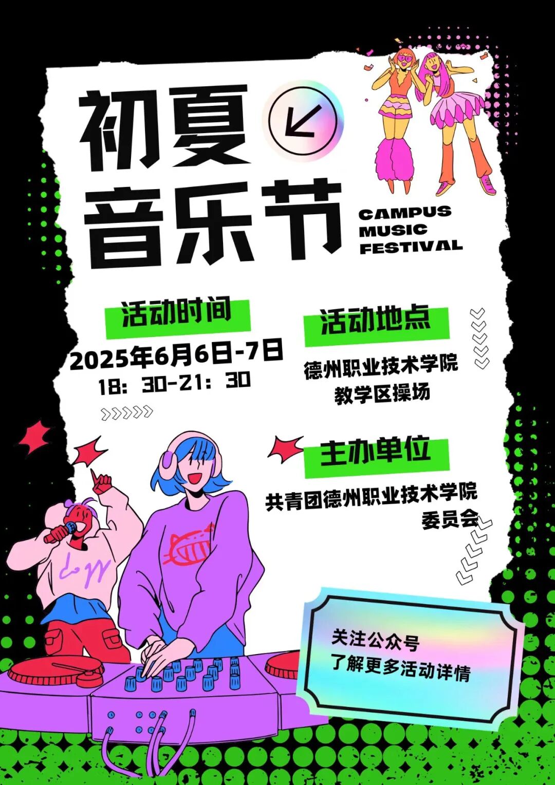 夏风轻拂,星光渐亮,属于我们的音乐狂欢时刻到了!德州职业技术学院2025初夏音乐节,即将在绿意盎然的校园怀抱中浪漫开启!