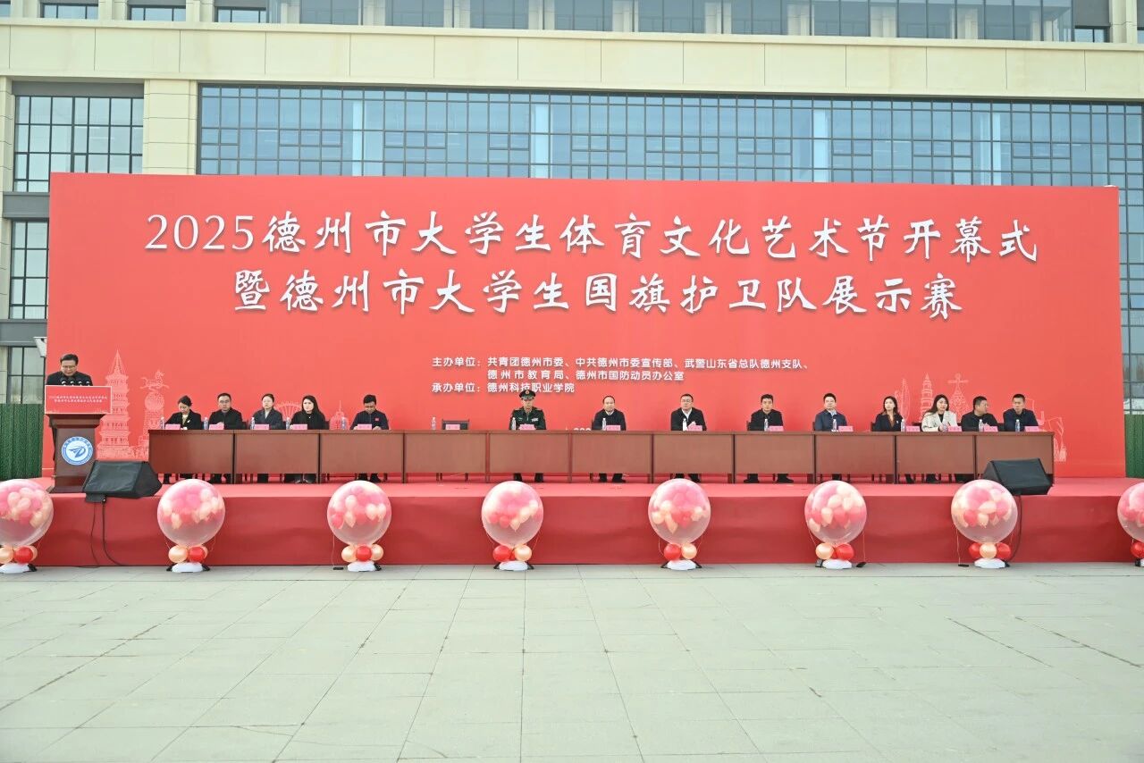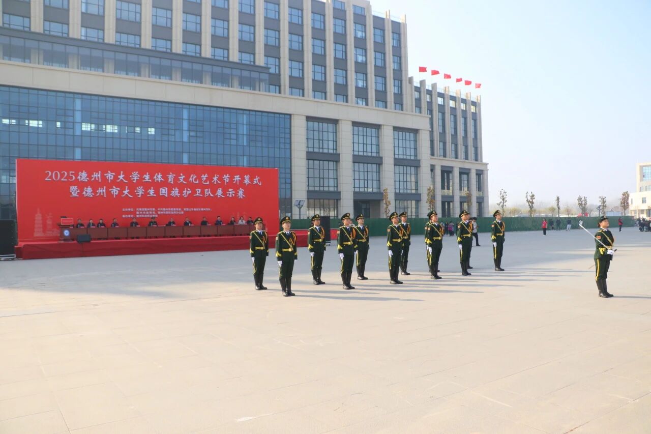 11月15日上午,2025德州市大学生体育文化艺术节开幕式暨德州市大学生国旗护卫队展示赛在德州科技职业学院(德州校区)举办。德州学院、德州职业技术学院、山东文化艺术职业学院、山东华宇工学院、德州科技职业学院、德州工程职业学院等6所高校的1500余名师生参加活动。