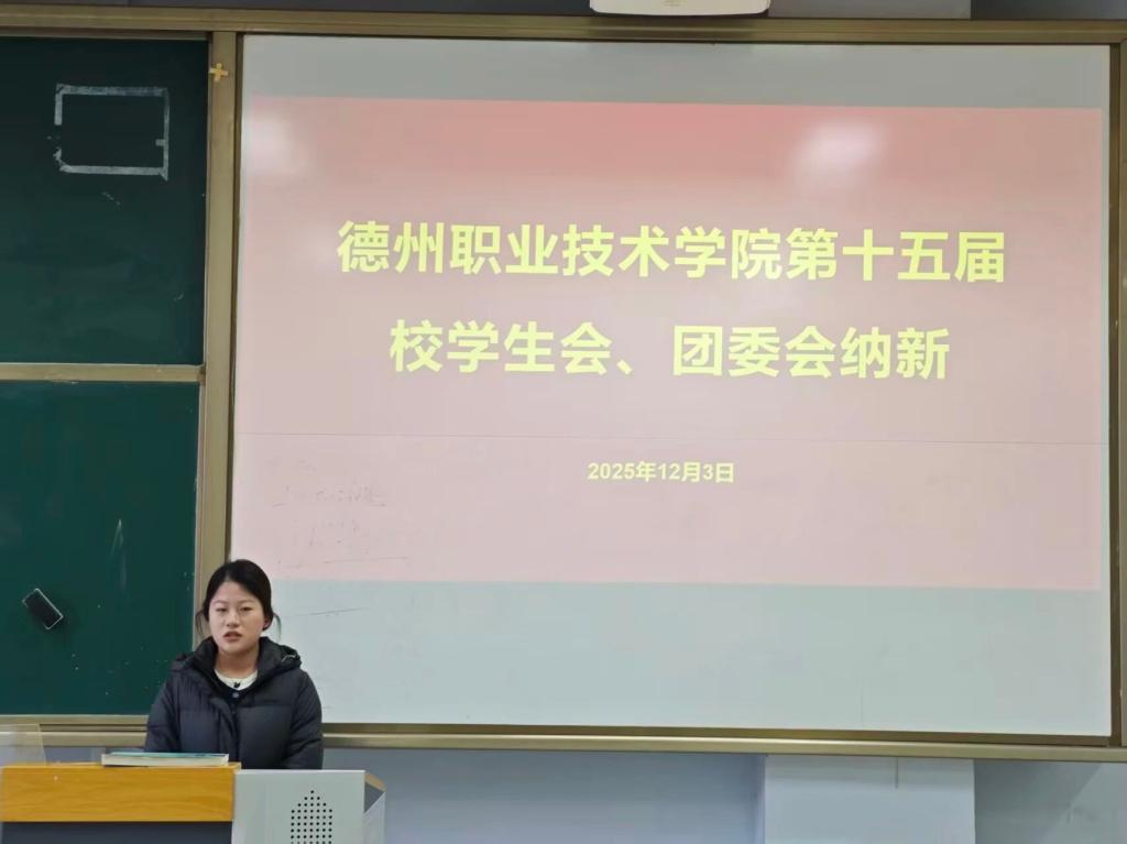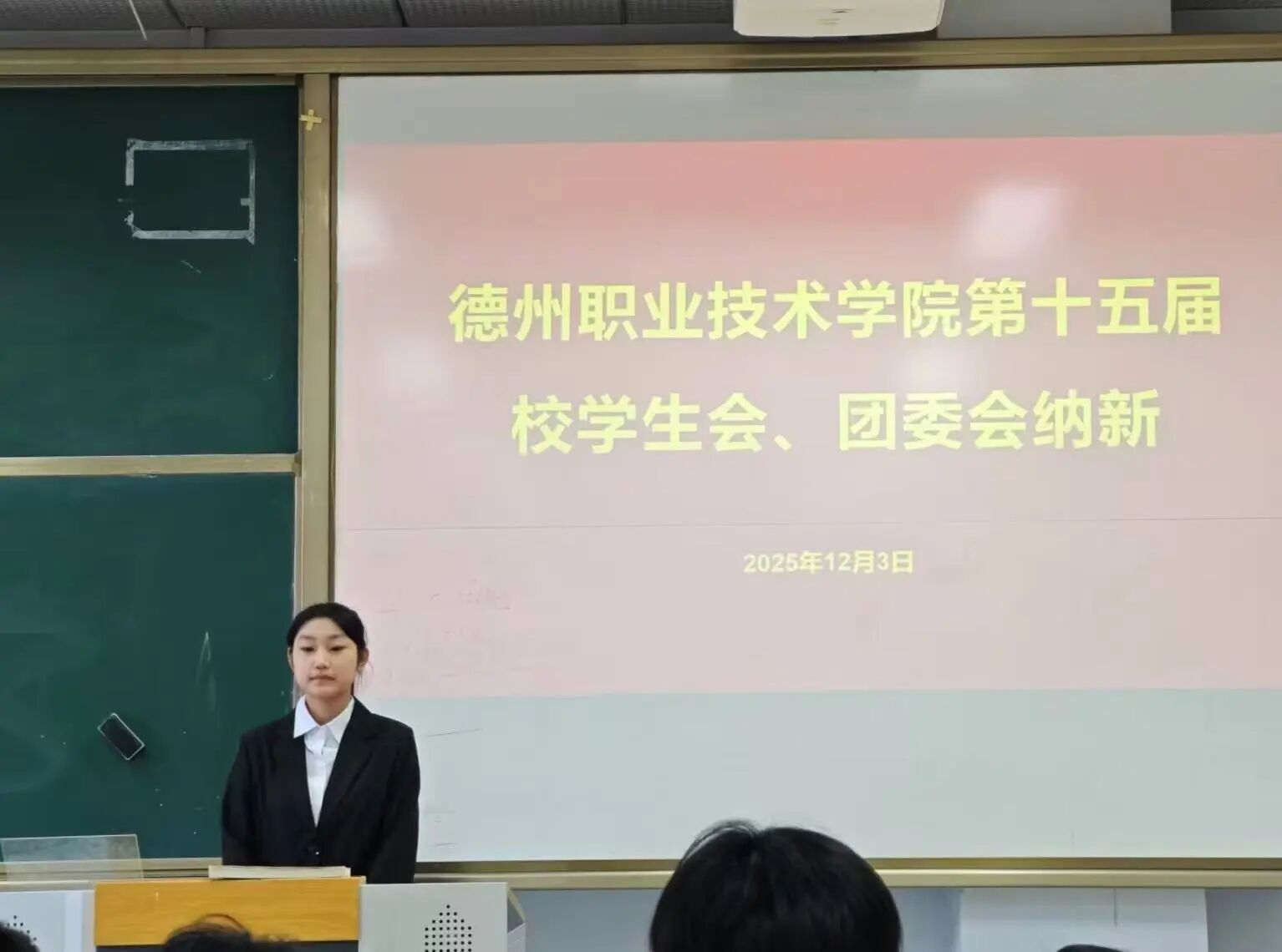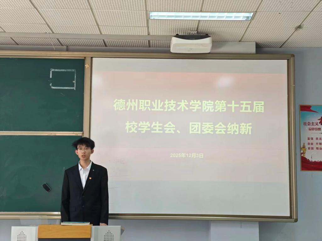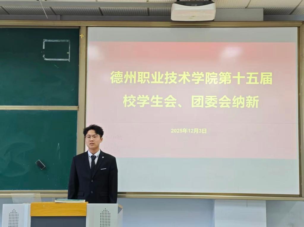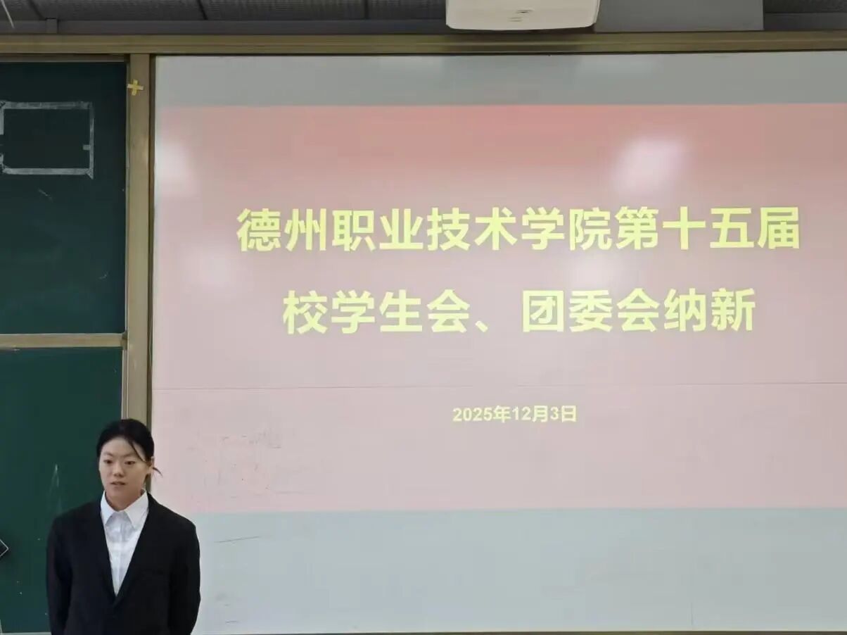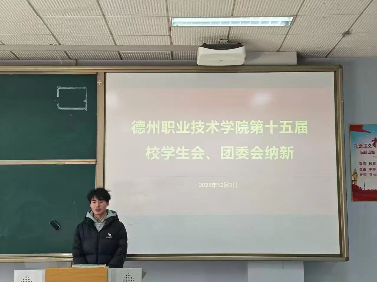 为汇聚培养新生力量,进一步充实和优化学生干部队伍,12月3日,德州职业技术学院2025-2026学年校学生会、团委会纳新面试在教学楼C308教室举行,校团委副书记宋振超与校级学生干部组织各部门负责人参与本次活动。