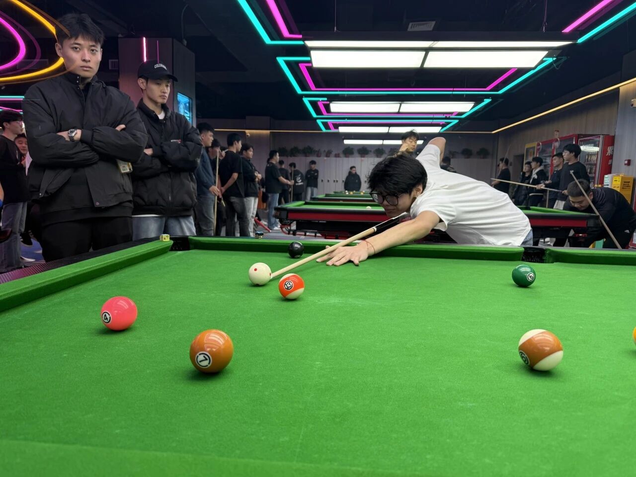 比赛于11月28日至30日在蔚来城商业广场酒球先生台球俱乐部正式开赛,赛事设置中式黑8单打项目。来自全校各院系的晋级选手历经初赛遴选脱颖而出,齐聚赛场展开为期三天的巅峰对决。本次赛事组织规范有序,专业裁判团队秉持公平公正原则全程执裁,为比赛的顺利推进提供了坚实保障,充分展现了校园文体活动的严谨性与专业性。