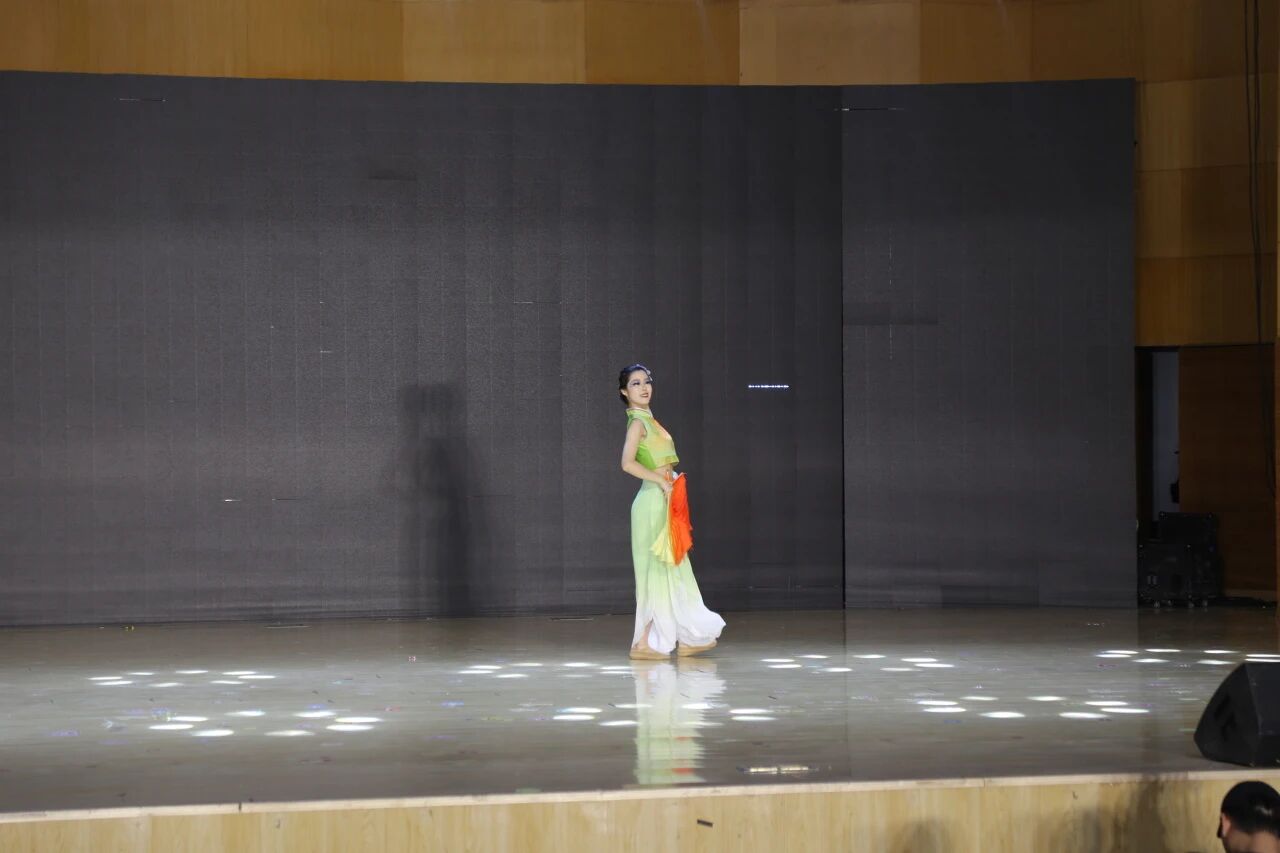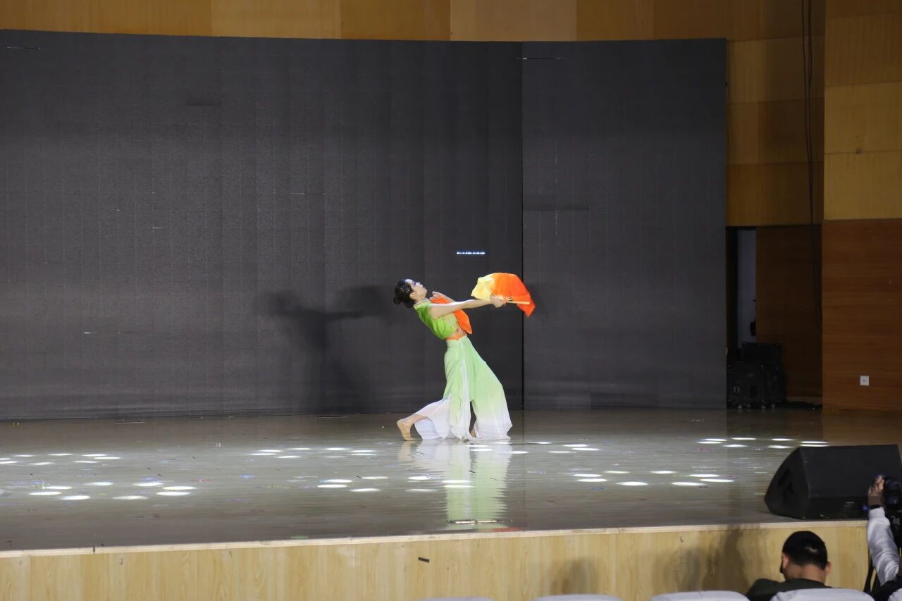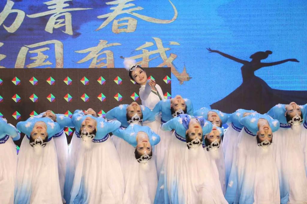 民族舞《一条大河》以恢弘的气势、深情的演绎,抒发了学子们对祖国山河的热爱。