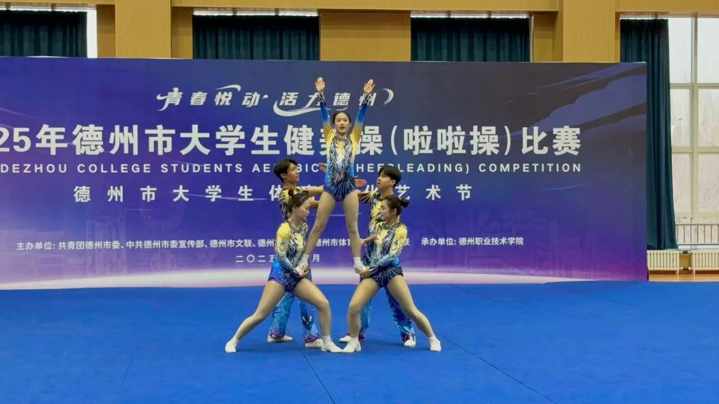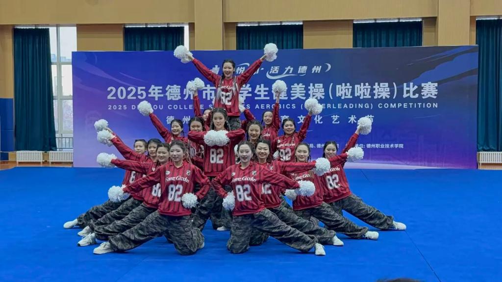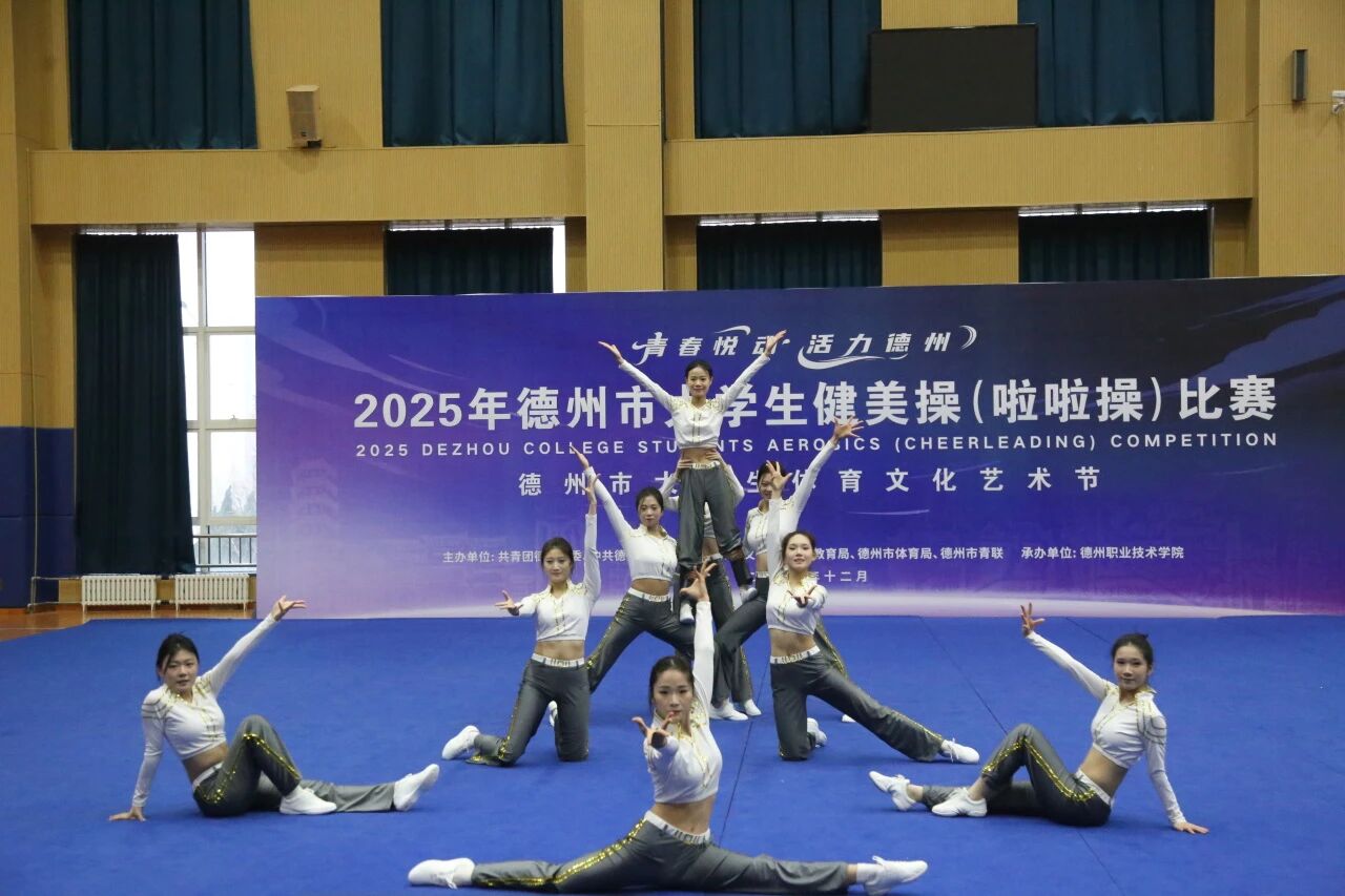 12月18日,德州市大学生健美操(啦啦操)比赛在德州职业技术学院综合训练馆圆满落幕。来自全市5所高校的代表队以舞会友,竞展风采。我校学子以整齐划一、富有感染力的动作,充分展现出德职学子朝气蓬勃的精神风貌。