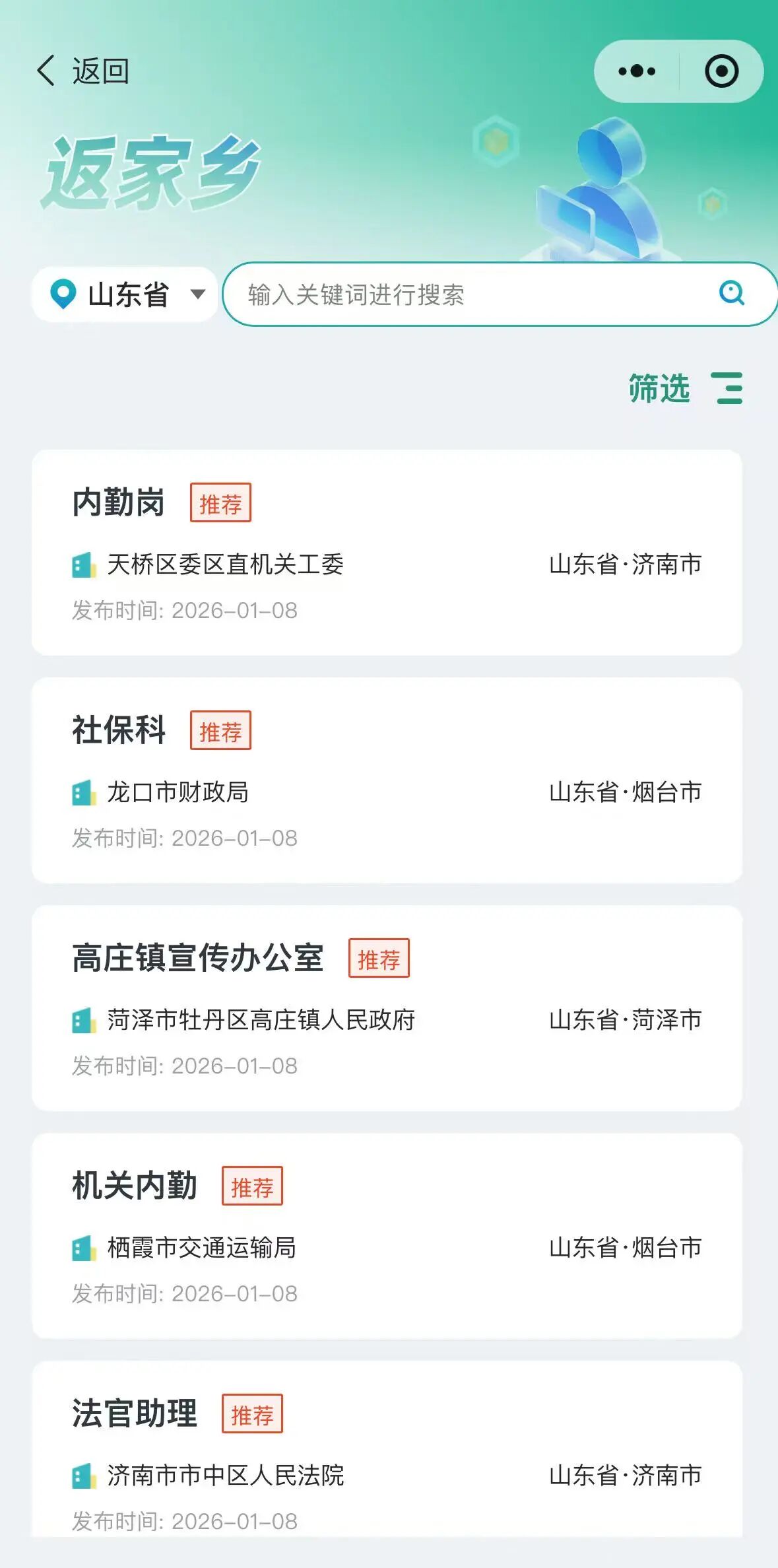 ③登录后确认个人信息无误,选择【岗位列表】,选择【区域筛选】,状态选择【报名中】,选择合适岗位进行报名即可。