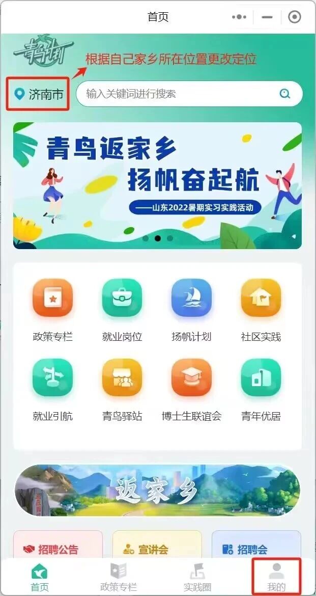 ③点击“首页”中的“返家乡”,选择心仪的实践岗位,投递简历即可。
