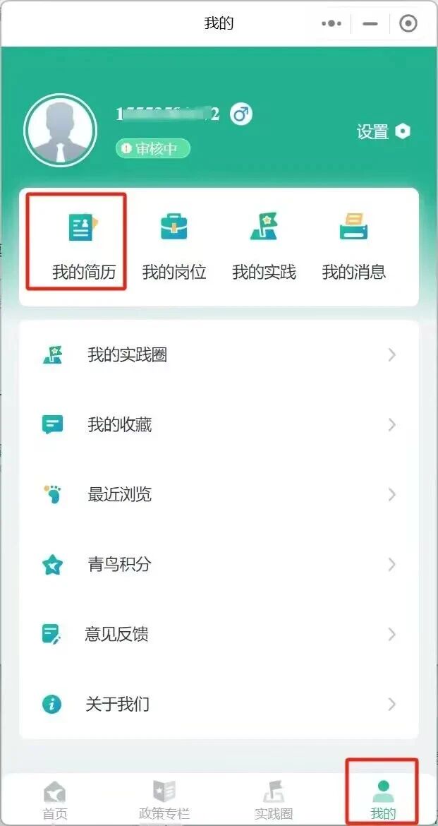 注:我的简历处需要完善个人学校、班级等信息,否则会影响简历的审核。