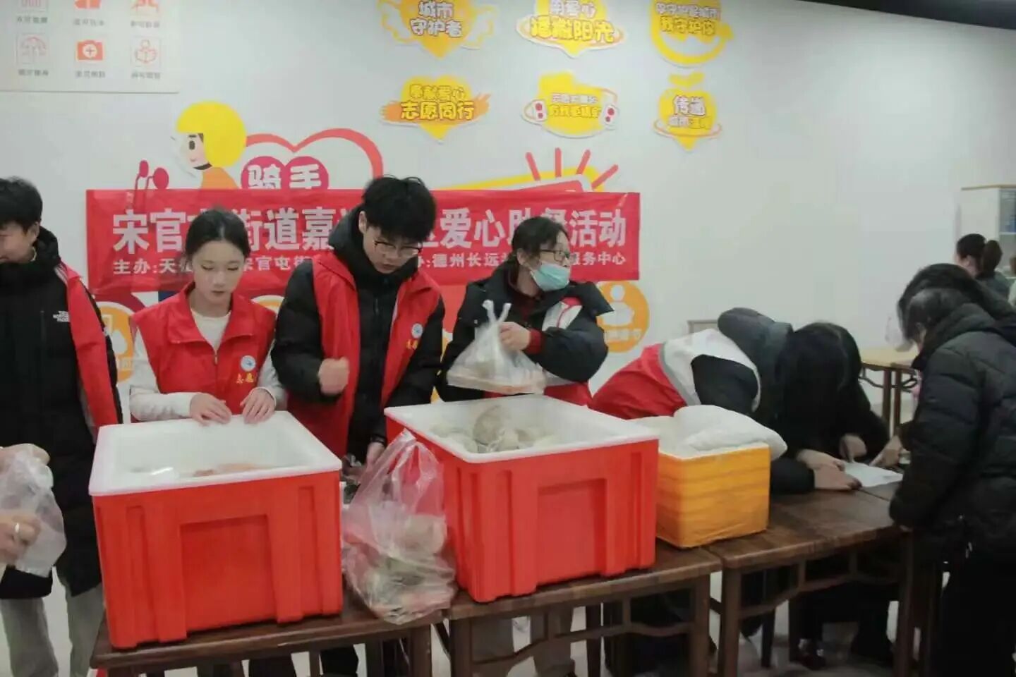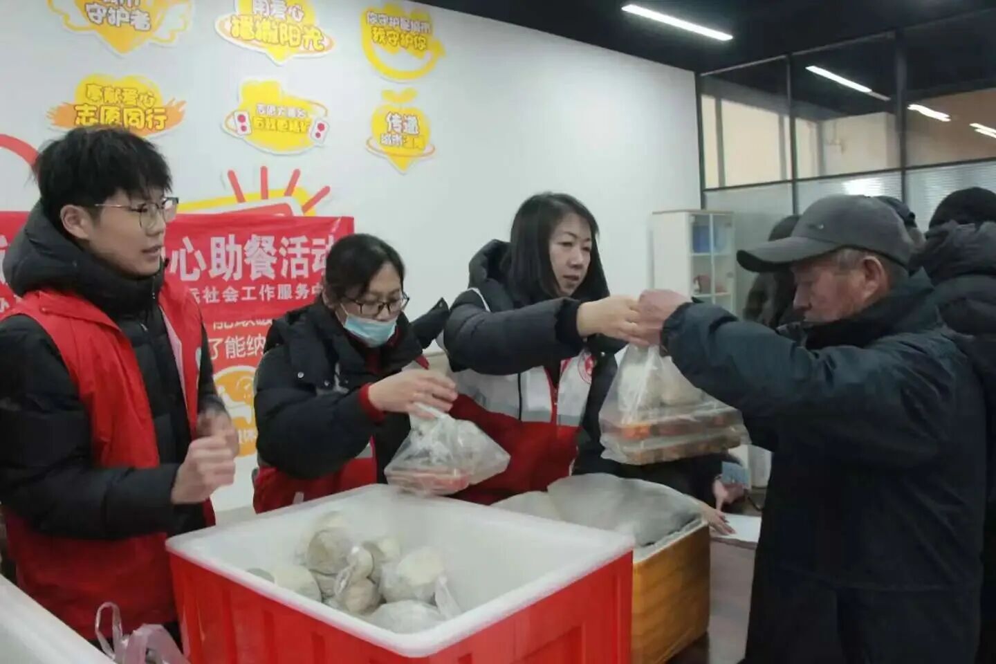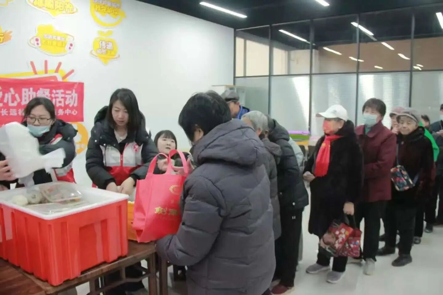 当日上午,志愿服务活动在社区同步拉开帷幕。助餐现场,青年志愿者们迅速分工协作,分拣餐盒、分装饭菜、精准测温、核对分量,每一个环节都细致严谨,只为确保老人们能吃上热乎、足量、可口的餐食。针对行动不便的高龄老人与独居长者,志愿者们主动扛起送餐责任,拎着打包整齐的餐盒登门拜访,不仅送上热腾腾的饭菜,更耐心陪老人唠家常、询问身体状况、叮嘱冬日保暖事宜,用点滴行动化解老人们的就餐难题,让孝老爱亲的真谛在面对面的关怀中传递。