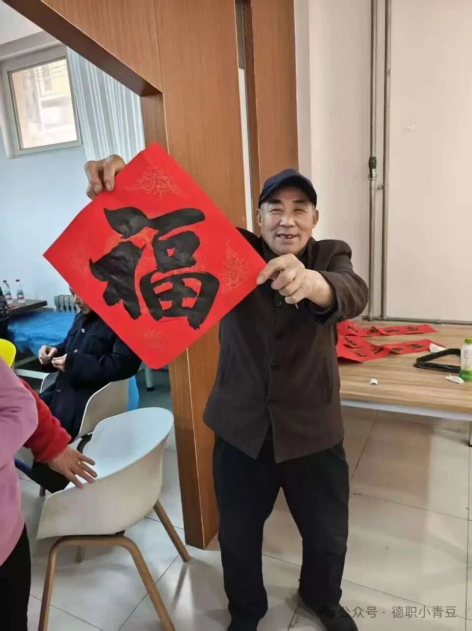 伴随淡淡的墨香,书法体验环节让现场更添一份宁静与温暖。在兰亭书法社成员的指导下,志愿者们陪伴老人提笔书写,一幅幅“福”字与对联跃然纸上。活动过程中,老人们自然地聊起过往习俗与生活智慧,志愿者们则成为专注的倾听者。无论是二胡旁的安静聆听,还是棋局间的轻松闲谈,每一段交流都让志愿者感受到,被尊重、被倾听的情感需求,是贯穿生命各阶段健康福祉的重要部分。