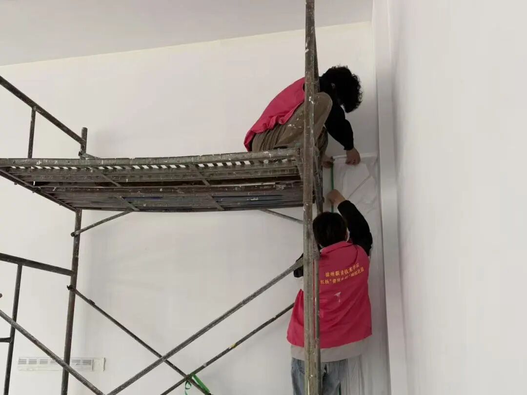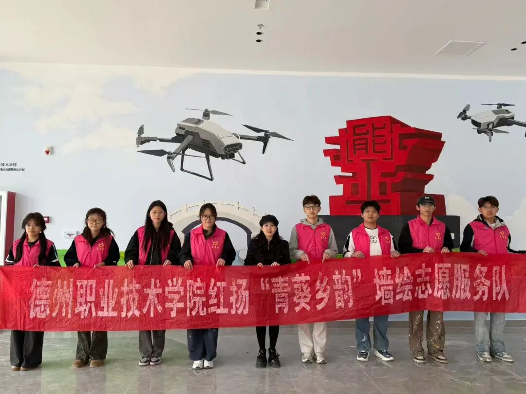 为弘扬雷锋精神、美化校园环境,2026年3月23日至24日,德州职业技术学院红扬“青葵乡韵”墙绘志愿服务队在考工楼开展“鼎承德能,智驭长空”主题墙绘活动。