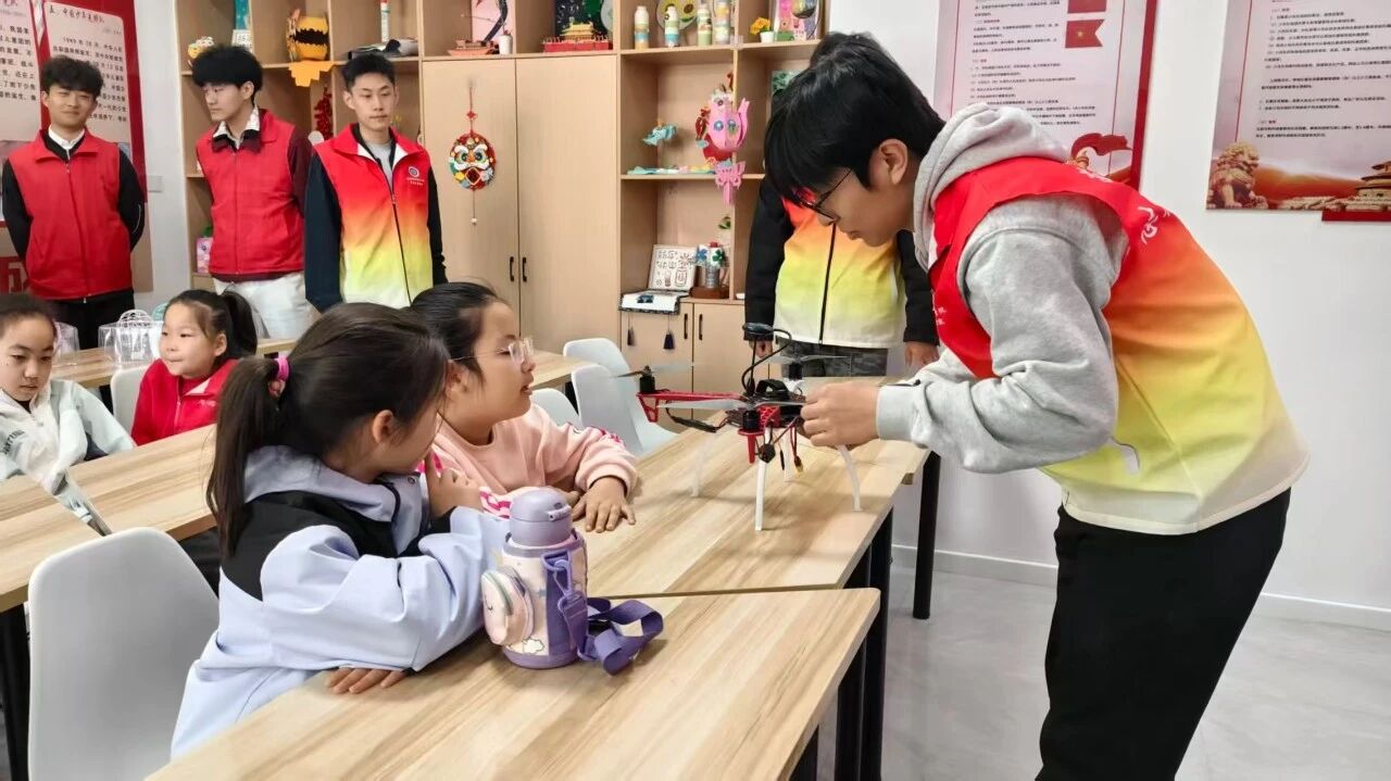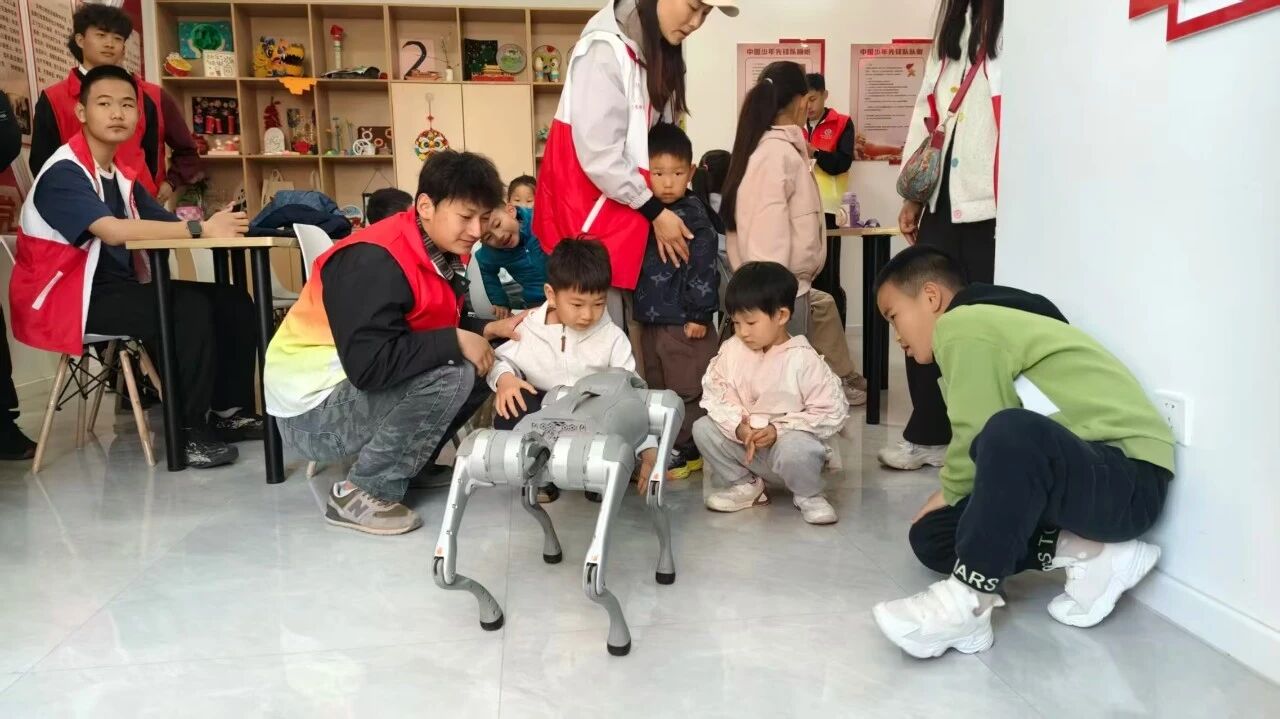 活动现场,志愿者们分工协作、各展所长。在科普宣讲区,志愿者用通俗易懂的语言讲解了无人机的基本构造、飞行原理及应用场景,并现场演示了无人机升空、悬停、绕障飞行等操作,引得孩子们仰头观望、连连惊叹。一旁的机器狗灵活行走、翻滚作揖,在志愿者的操控下完成一系列拟人动作,逗得小朋友们开怀大笑。志愿者借此介绍了传感器、运动控制、人工智能识别等基础知识,让抽象的科学原理变得触手可及。