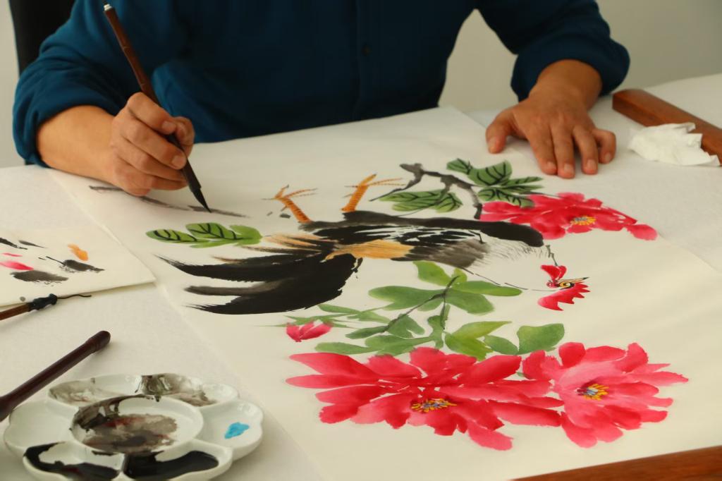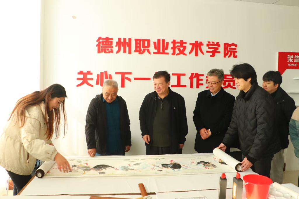 活动现场氛围热烈,李跃同志挥毫泼墨、亲自创作“鸡牡图”书画作品,以灵动笔墨与深邃艺术语言,生动诠释文化寓意与育人期许。画卷中的牡丹,暗合我校师生“花团锦簇”的蓬勃气象——新老同仁齐聚一堂、各领域人才济济,在文化传承的纽带中凝聚合力,绘就共生共荣的校园文化生态;昂首雄鸡则承载“闻鸡起舞”的奋进内核,既寄寓着对青年学子的殷切期许,更勉励大家以昂扬之姿深耕学业、笃行事业,在新时代征程中彰显雄赳赳、气昂昂的青春风采,让拼搏进取的精神与传统文化底蕴共生共长。